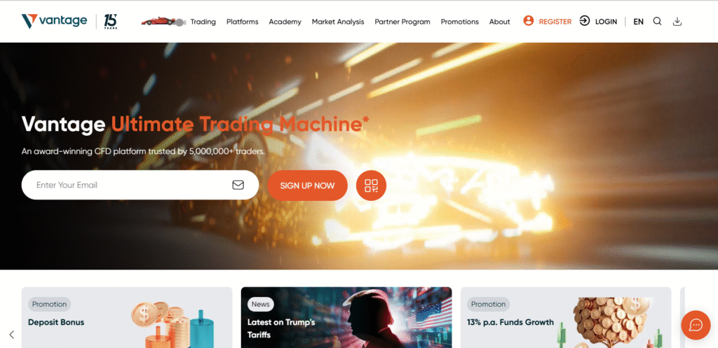 Vantage Markets offers access to over 1,000 tradable instruments, including CFDs on forex, commodities, indices, ETFs, and bonds. Regulated by ASIC, FCA, FSCA, and VFSC, it stands out with its razor-thin spreads, user-friendly platforms, and robust educational tools, empowering traders to diversify and excel in the financial markets.